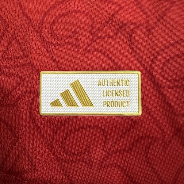 • Logo và huy hiệu ép nhiệt 3D cao cấp: Logo nhà tài trợ đều được ép nhiệt 3D, tạo cảm giác nhẹ nhàng, mượt mà khi chạm vào và giảm thiểu ma sát, khác biệt hoàn toàn so với việc thêu trên áo Fan. Điều này giúp áo nhẹ hơn và bền hơn khi thi đấu cường độ cao.