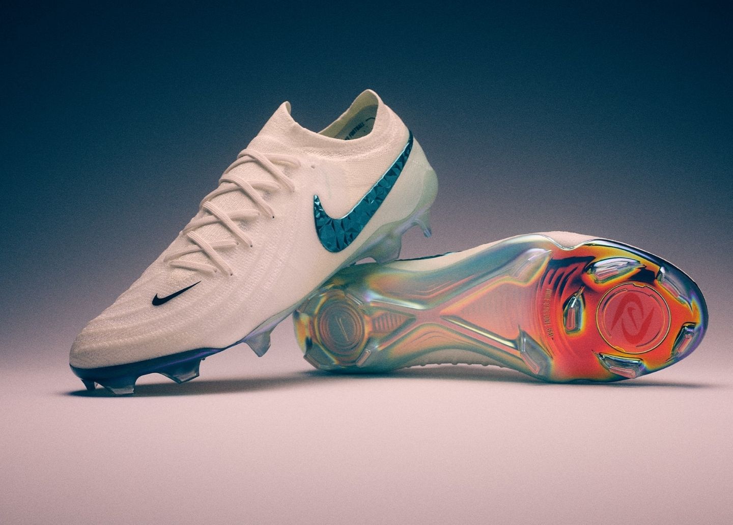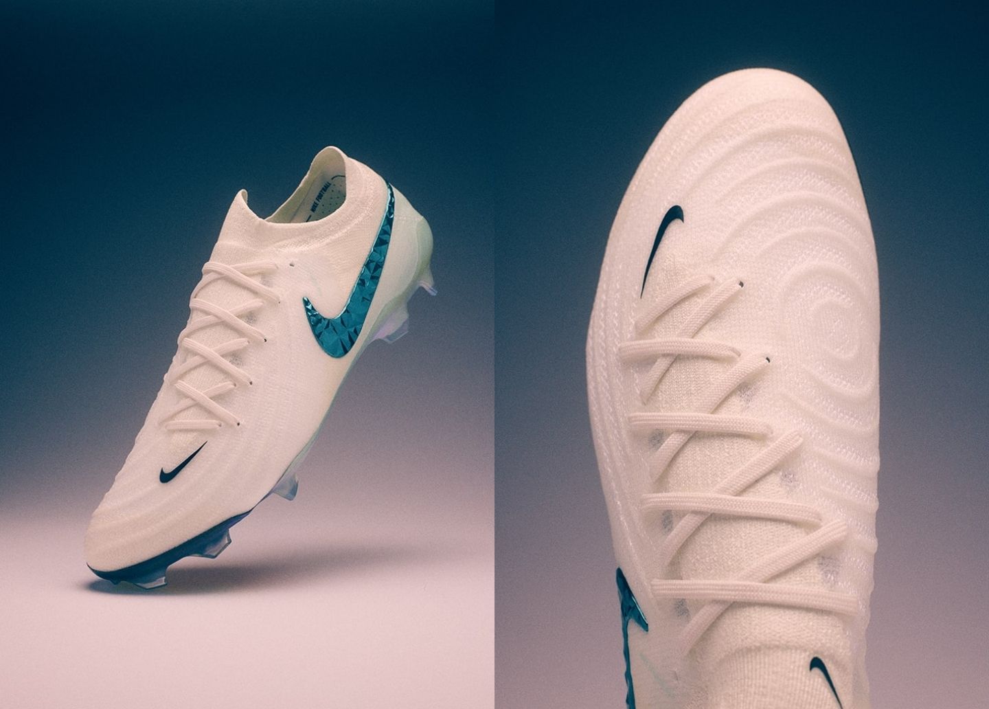 Cuối cùng là Phantom GX 2 “Chromatic Pack” trong phối màu “White/Teal Tint” (Trắng/Xanh mòng két). Gam màu ‘Teal Tint’ đã trở lại trên Phantom trong một thiết kế chuyển màu dần tương tự như Mercurial, tuy nhiên dòng giày ‘Control’ của Nike được tập trung nhiều hơn vào sự tinh tế. Màu sắc ‘Teal Tint’ bao trùm phần đế ngoài được hoàn thiện bằng lớp mạ chrome cao cấp - tạo sự đồng nhất với chủ đề của bộ sưu tập
