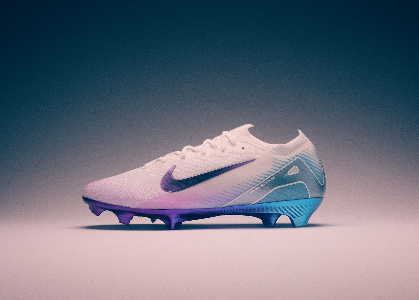 Mercurial khoác lên mình phối màu độc đáo, với sắc màu ‘Ember Glow’ từ bộ sưu tập “Mad Energy Pack”, nhưng được biến tấu thành gam màu tím/xanh lam đậm hơn, chuyển dần sang sắc trắng tinh khôi.