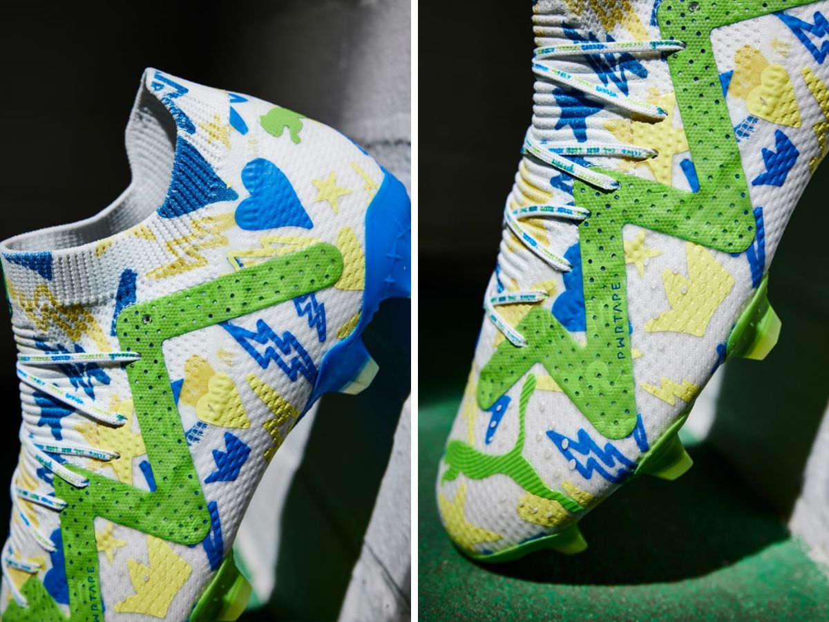 Đôi giày sáng màu và táo bạo của cầu thủ người Brazil có phối màu chính thức “Puma White/Racing Blue/Lemon Meringue/Parakeet Green”, với màu trắng làm màu cơ bản và các màu xanh lam, vàng và xanh lá cây nổi bật trong nhiều loại đồ họa giống với Selecao màu sắc cổ điển.